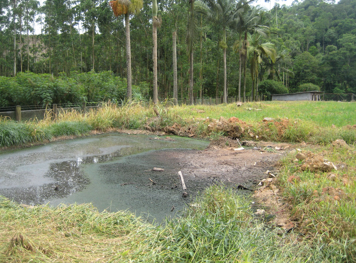The point of departure was the 30 m³ of pig liquid manure which are produced in the daily operation of the farm. This liquid manure represents a huge environmental problem in Brazil and was stored in open lagoons in Pomerode (see the image from google Erath), which made the manure end up in the groundwater or even in surface water, that is afterwards used for the conditioning of drinking water.